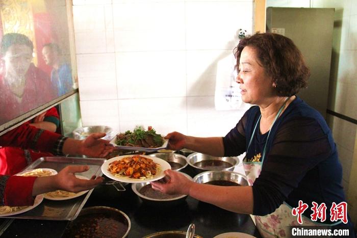 資料圖為甘肅敦煌一面館的服務(wù)人員為顧客端上驢肉和黃面。中新社發(fā) 甘肅省敦煌市委宣傳部 供圖
