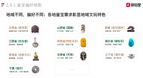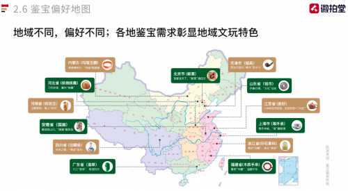 通過(guò)白皮書,我們還可以發(fā)現(xiàn)不同地域的人們對(duì)鑒寶品類有不同的偏愛(ài),彰顯出鮮明的地域文玩特色。首都北京文化底蘊(yùn)深厚,交通四通八達(dá),作為見(jiàn)證社會(huì)發(fā)展變遷的郵票,深受當(dāng)?shù)夭赜褌兊南矏?ài),鑒寶需求也最為旺盛;中國(guó)“四大名石”之一的青田石產(chǎn)自浙江省,這里的昌化石章料同樣遠(yuǎn)近聞名,當(dāng)?shù)夭赜谚b寶時(shí)自然偏愛(ài)印石章料;廣東省不產(chǎn)翡翠,但中國(guó)翡翠市場(chǎng)大部分卻集中在廣東,這里翡翠貿(mào)易聯(lián)通海內(nèi)外,當(dāng)?shù)夭赜严矚g鑒寶翡翠,可謂實(shí)至名歸。