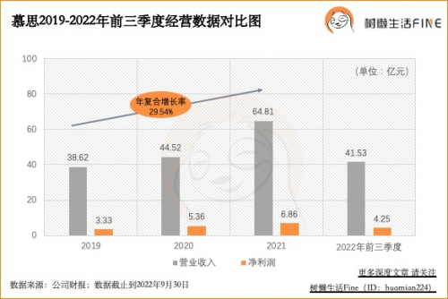 再對比慕思,其實(shí)也是相同的邏輯。慕思當(dāng)前的發(fā)展,無論是業(yè)績增長、利潤、品牌影響力,各方面都是比較舒服的狀態(tài)。從慕思最近3年(2019-2021年)的經(jīng)營數(shù)據(jù)看,營業(yè)收入從38.62億元增長至64.81億元,年復(fù)合增長率達(dá)到29.54%,凈利潤從3.33億元增長至6.86億元,年復(fù)合增長率達(dá)43.53%。