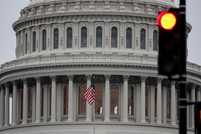 這是1月19日在美國首都華盛頓拍攝的國會大廈。
