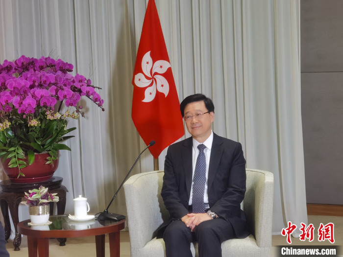 香港特區(qū)行政長官李家超2月28日接受中新社等媒體專訪,暢談發(fā)展國際創(chuàng)新科技中心、中外文化藝術(shù)交流中心的優(yōu)勢、動力及路徑。 中新社記者 索有為 攝