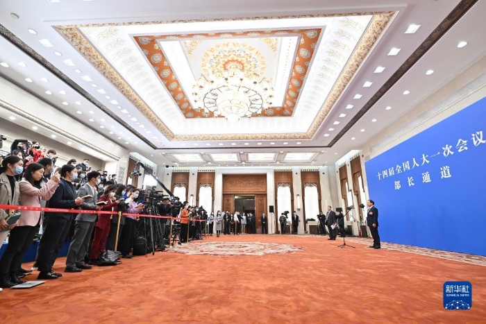 3月5日,第十四屆全國(guó)人民代表大會(huì)第一次會(huì)議舉行首場(chǎng)“部長(zhǎng)通道”采訪活動(dòng)。新華社記者 劉金海 攝
