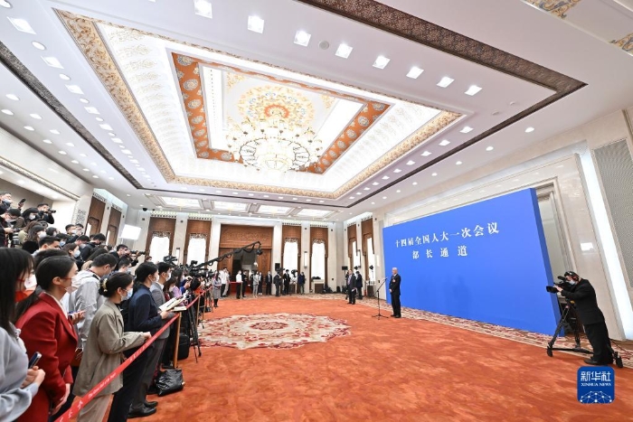 3月5日,第十四屆全國(guó)人民代表大會(huì)第一次會(huì)議舉行首場(chǎng)“部長(zhǎng)通道”采訪活動(dòng)。這是工業(yè)和信息化部部長(zhǎng)金壯龍接受媒體采訪。新華社記者 才揚(yáng) 攝