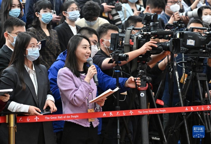 3月5日,第十四屆全國(guó)人民代表大會(huì)第一次會(huì)議舉行首場(chǎng)“部長(zhǎng)通道”采訪活動(dòng)。這是新華社記者在采訪。新華社記者 劉金海 攝