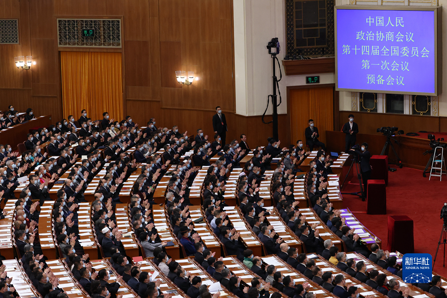 3月3日,中國人民政治協(xié)商會議第十四屆全國委員會第一次會議預(yù)備會議在北京人民大會堂舉行。新華社記者 李學仁 攝