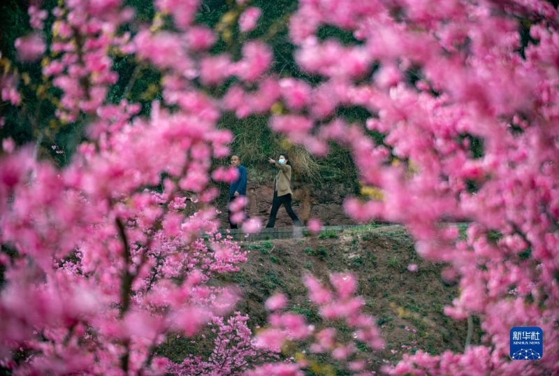 3月5日,兩名游客在馬龍區(qū)沈家山櫻花谷觀光游覽。