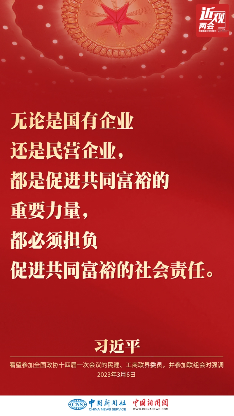 中共中央總書記、國(guó)家主席、中央軍委主席習(xí)近平3月6日下午看望了參加全國(guó)政協(xié)十四屆一次會(huì)議的民建、工商聯(lián)界委員,并參加聯(lián)組會(huì),聽取意見和建議。他強(qiáng)調(diào)——