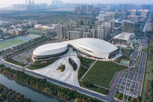 吳江區(qū)蘇州灣體育中心是全國為數(shù)不多的疊加體育競技、健身休閑、商業(yè)娛樂 、文藝演出、商務(wù)酒店為一體的多功能、綜合性、生態(tài)型的復(fù)合型體育綜合體。體育館建筑面積約2.9萬平米,整體為波浪狀曲面,主賽場觀眾席 4200 座;游泳館建筑面積約1.2萬平米,整體為傾斜的平板,尾部帶有上揚(yáng)的飄帶。場館成功承辦了CUBA大學(xué)生聯(lián)賽等多種賽事,激發(fā)全民健身的熱潮。據(jù)了解,蘇州灣體育中心泵房的各類設(shè)備、管道排布合理,場館內(nèi)除濕機(jī)組和織物布袋風(fēng)管安裝美觀,管線設(shè)置規(guī)范、牢固可靠,排布整齊、美觀大方。