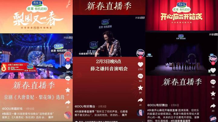 同樣是在今年CNY活動期間,優(yōu)萃有機奶粉合作了《梨園又一春》、《薛之謙演唱會》、《開心麻花開箱夜》等自帶關注度、話題性和高熱曝光的直播項目,這其中涵蓋戲曲、音樂、小品等多類型,滿足了不同圈層受眾的內容需求。無論是別致氣韻的戲曲盛宴、讓人捧腹的喜劇專場還是高品質音樂沉浸表演,都將春節(jié)氛圍拉至高潮,而借勢節(jié)目本身的影響力和傳播力,優(yōu)萃有機奶粉在收獲不俗流量的同時,再一次將“讓小寶寶先吃上有機食品”的品牌信息進行了生動植入。