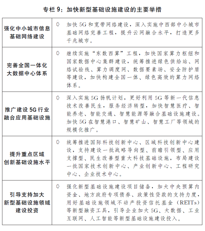 (計(jì)劃報(bào)告中的專欄9:加快新型基礎(chǔ)設(shè)施建設(shè)的主要舉措)