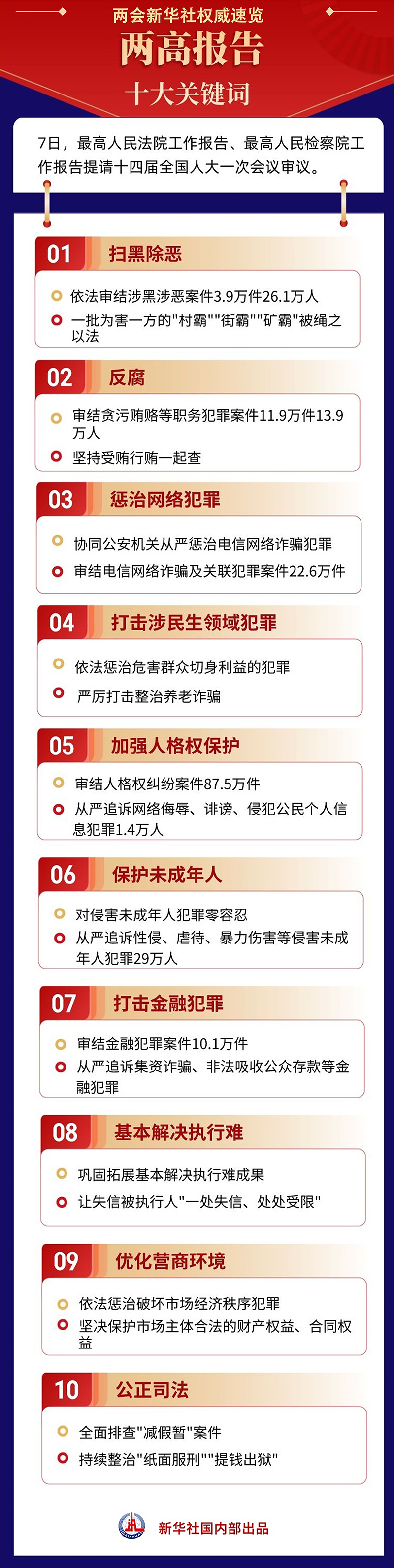 新華社北京3月7日電 題:十大關(guān)鍵詞解讀兩高報告
