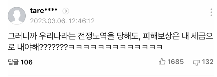 有網(wǎng)友質(zhì)疑道:“我們國家曾深受戰(zhàn)爭之苦,如今對受害者的賠償金卻要用我們自己納的稅來支付?”
