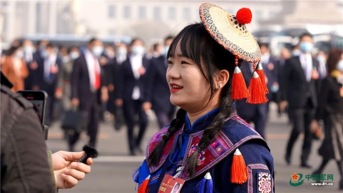 全國人大代表接受媒體采訪。