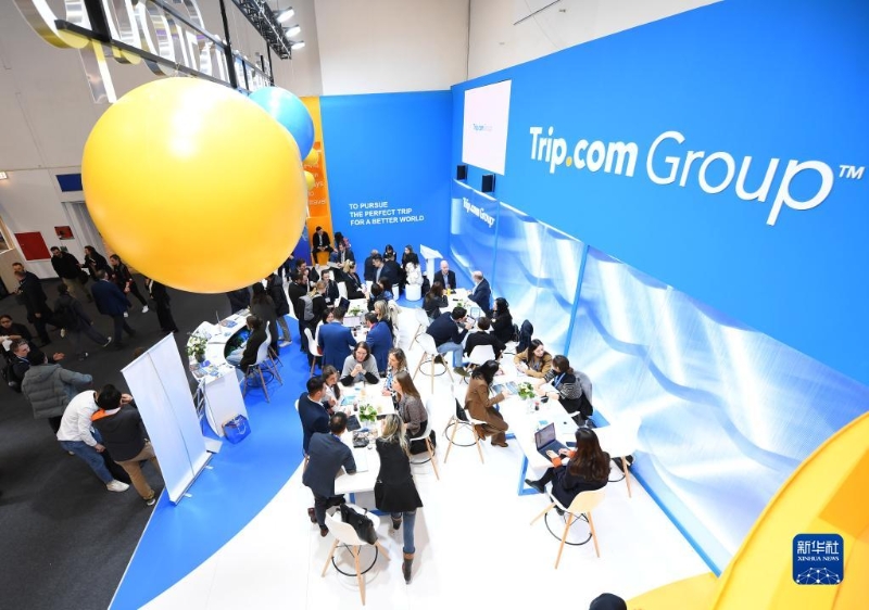 這是3月7日在德國柏林拍攝的柏林國際旅游交易會攜程集團展區(qū)。
