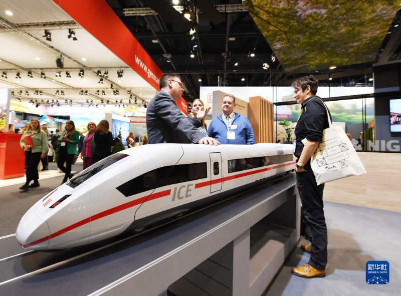 3月7日,人們在德國柏林舉行的柏林國際旅游交易會德國鐵路公司展區(qū)交流。