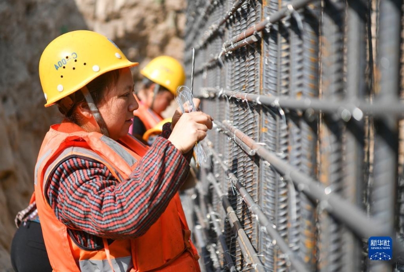 3月8日,在位于陜西省西安市國際港務區(qū)的水流路跨灞河大橋項目施工現場,中建三局西北公司鋼筋工楊瓊華在施工現場工作。