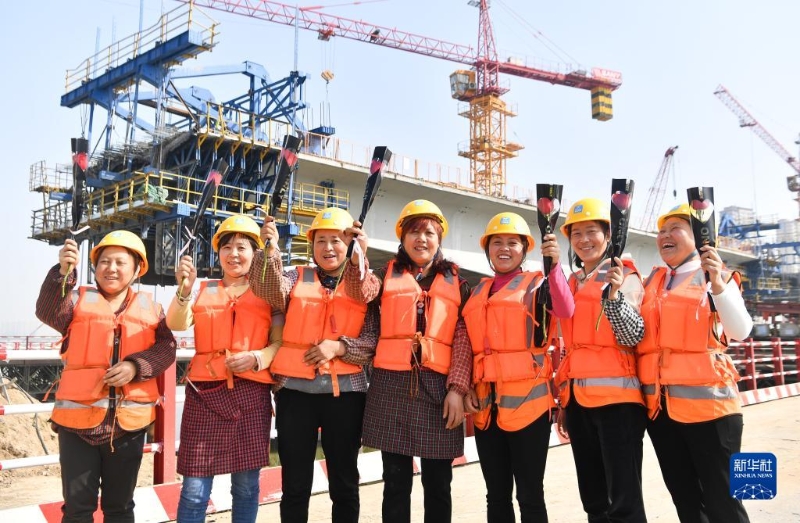 “三八”國際勞動婦女節(jié)當天,在陜西省西安市部分施工項目工地上,不少女性工友堅守城市建設一線,承擔著吊塔指揮、捆扎鋼筋、場地維護等工作,用汗水撐起建筑工地“半邊天”。項目承建方準備了鮮花等禮品,為女工友們送上節(jié)日祝福。