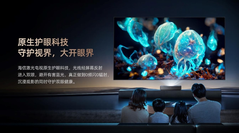無頻閃、無輻射,低有害藍(lán)光,海信激光電視S760K真正做到家庭沉浸觀影的同時(shí)更健康。