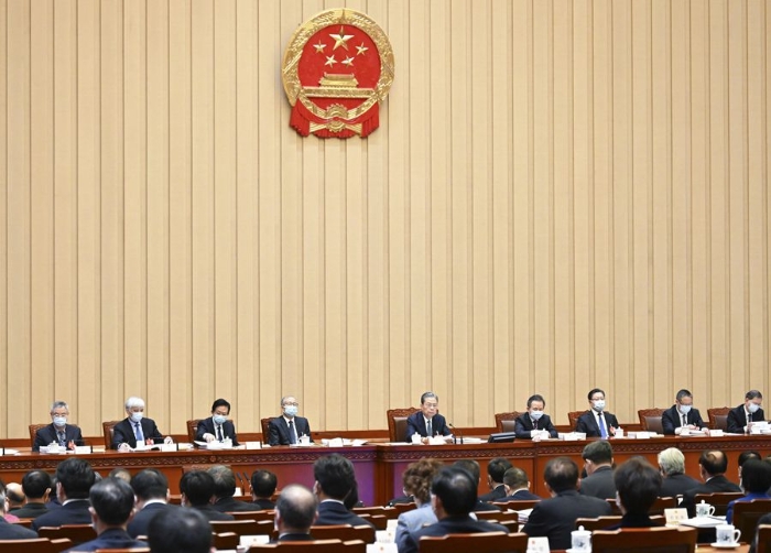 3月9日上午,十四屆全國人大一次會議主席團在北京人民大會堂舉行第三次會議。主席團常務(wù)主席趙樂際主持會議。新華社記者 謝環(huán)馳 攝