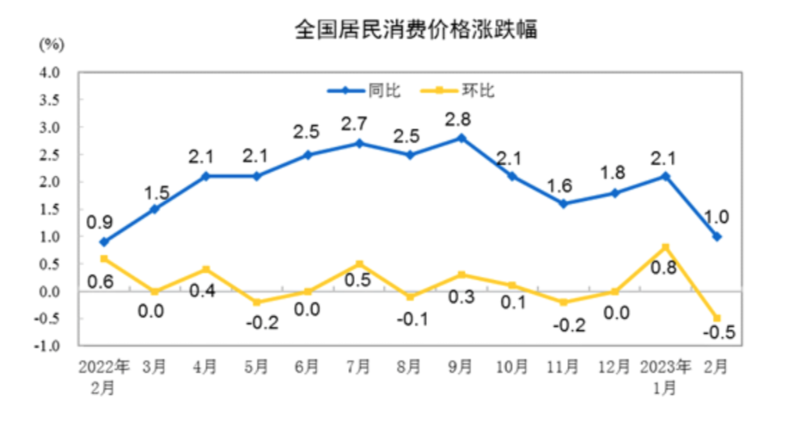 國(guó)家統(tǒng)計(jì)局9日發(fā)布數(shù)據(jù),2月份,全國(guó)居民消費(fèi)價(jià)格指數(shù)(CPI)同比上漲1%,漲幅比上月回落1.1個(gè)百分點(diǎn);全國(guó)工業(yè)生產(chǎn)者出廠價(jià)格指數(shù)(PPI)同比下降1.4%,降幅比上月擴(kuò)大0.6個(gè)百分點(diǎn)。國(guó)內(nèi)物價(jià)保持平穩(wěn)運(yùn)行。