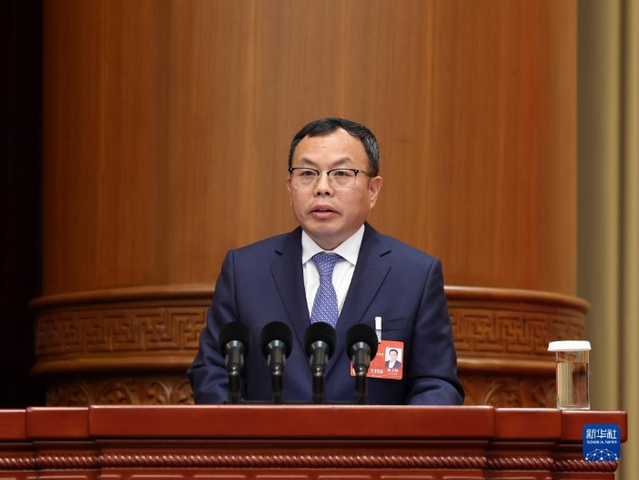 3月9日,全國政協(xié)十四屆一次會議舉行視頻會議,委員作大會發(fā)言。這是魏青松委員在主會場作大會發(fā)言。新華社記者 丁海濤 攝