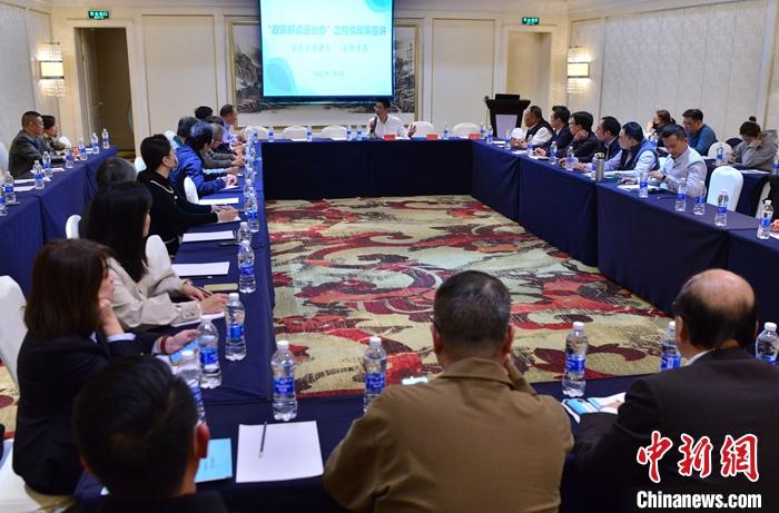 圖為會(huì)后工作人員為臺(tái)胞們講解稅收優(yōu)惠政策。 中新社記者 張斌 攝