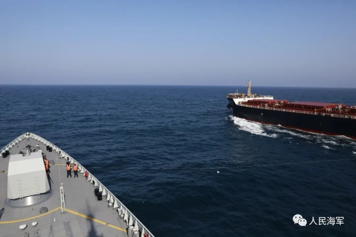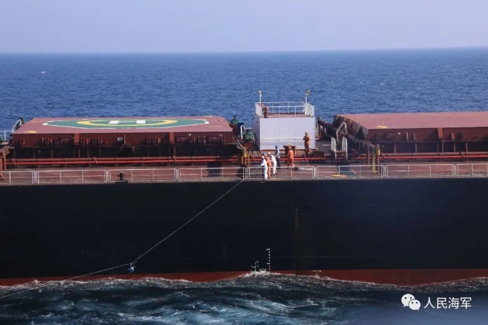 3月5日11時(shí),綜合考慮航行安全、海洋氣象條件等方面因素影響,編隊(duì)決定參照橫向補(bǔ)給的方式,為“粵電102”號(hào)商船運(yùn)送藥品并提供醫(yī)療指導(dǎo)。