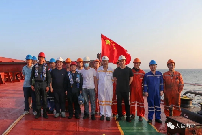 ▲救治結(jié)束后醫(yī)生與船員合影留念