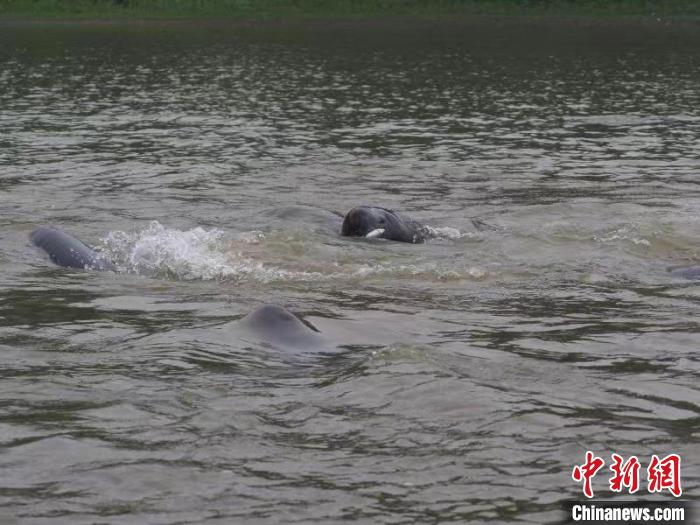 如今,南京江邊頻頻可見江豚戲水的身影。(資料圖) 南京江豚水生生物保護(hù)協(xié)會(huì)供圖