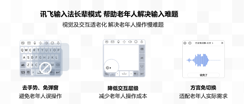 訊飛輸入法總經(jīng)理程坤表示,“長輩模式”不是一“大”了之,而是從群體需求和使用場景出發(fā),持續(xù)優(yōu)化,讓產(chǎn)品適老、服務(wù)助老。例如我們在長輩模式中加入“方言免切換”,讓打字困難、不會說普通話的老人更方便使用手機交流,期望將“適老”上升到“享老”的層次,同時也使產(chǎn)品和技術(shù)發(fā)展成通用的適老行業(yè)標準和規(guī)范。
