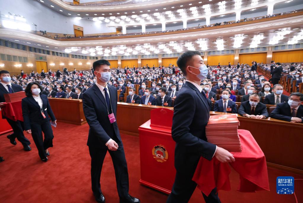 3月10日,全國政協(xié)十四屆一次會(huì)議在北京人民大會(huì)堂舉行第三次全體會(huì)議。這是工作人員準(zhǔn)備發(fā)放選票。