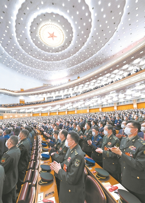 3月12日,十四屆全國(guó)人大一次會(huì)議在北京人民大會(huì)堂舉行第五次全體會(huì)議。 解放軍報(bào)記者 王俊 攝