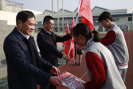 面對(duì)人生的第一次考驗(yàn),翟任重校長(zhǎng)親自為各班授戰(zhàn)旗,陳玉兵副校長(zhǎng)為各班贈(zèng)送倒計(jì)時(shí)牌。各班代表氣勢(shì)恢宏地?fù)]舞著戰(zhàn)旗,預(yù)示著斜塘學(xué)子們必將旗開得勝,心想事成,共鑄輝煌。