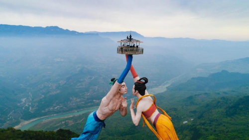 與仙女山隔江相望的白馬山天尺情緣景區(qū)同樣景色旖旎,浪漫無(wú)比。以愛(ài)情元素為主題,真愛(ài)禮堂、海誓山盟廣場(chǎng)、愛(ài)情模仿、千年之吻、天下鵲橋等等,景區(qū)內(nèi)愛(ài)情文化濃厚,到處都可邂逅浪漫。在望仙崖景點(diǎn)俯可觀千里烏江奔騰洶涌,仰可觀遠(yuǎn)眺仙女山奇峰妙筆、浪漫多情。