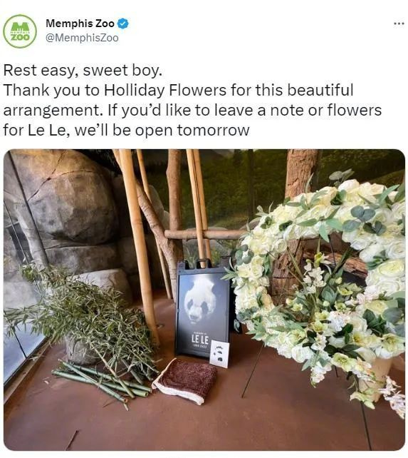 2023年2月,孟菲斯動(dòng)物園宣布“樂(lè)樂(lè)”去世。動(dòng)物園方面說(shuō),“樂(lè)樂(lè)”在睡覺(jué)時(shí)平靜離去。聲明指出,過(guò)去20年來(lái),“樂(lè)樂(lè)”為數(shù)百萬(wàn)游客帶來(lái)歡樂(lè),是美中合作保護(hù)大熊貓伙伴關(guān)系的象征。