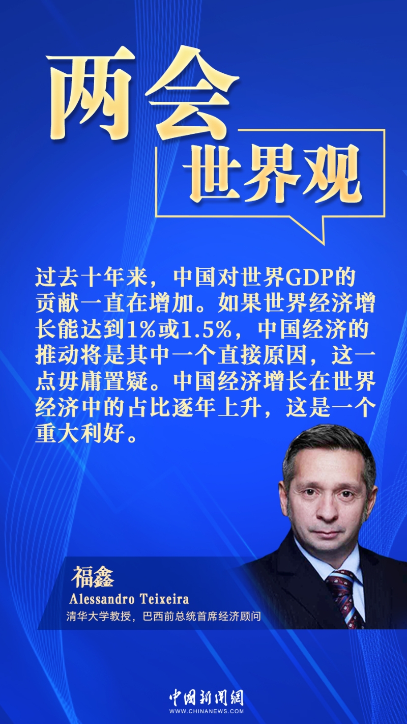 中新網(wǎng)3月13日電 (吳辛茹)2023年全國(guó)兩會(huì)受到多國(guó)關(guān)注。清華大學(xué)教授、巴西前總統(tǒng)首席經(jīng)濟(jì)顧問(wèn)福鑫(Alessandro Teixeira)在接受中新網(wǎng)專(zhuān)訪時(shí)指出,中國(guó)經(jīng)濟(jì)的發(fā)展是提振世界經(jīng)濟(jì)的一大直接原因,這一點(diǎn)毋庸置疑。中國(guó)經(jīng)濟(jì)在世界經(jīng)濟(jì)中的占比逐年上升,這是一個(gè)重大利好。