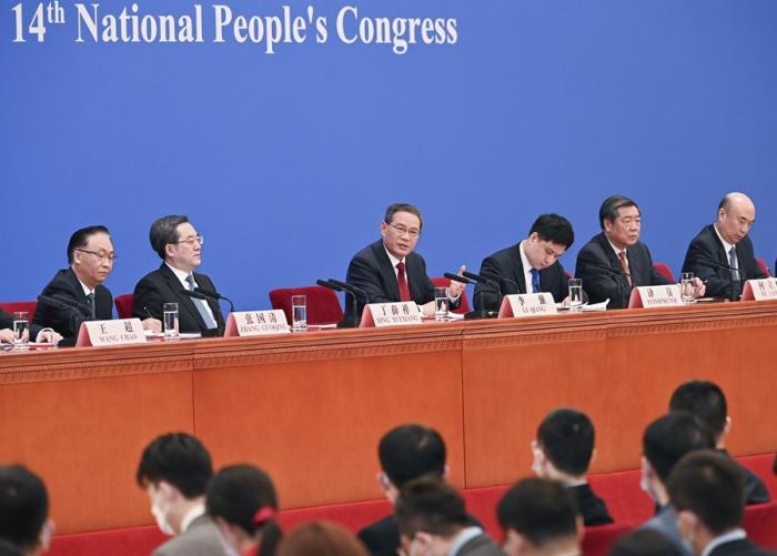 3月13日,十四屆全國人大一次會議在北京人民大會堂舉行記者會,國務(wù)院總理李強(qiáng)出席并回答中外記者提問。國務(wù)院副總理丁薛祥、何立峰、張國清、劉國中參加。 新華社記者 岳月偉 攝