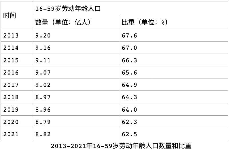 首先,我國的人口紅利和人口增長曲線正在快速衰減,這一趨勢已無需再贅述。具體到就業(yè)人口,也就是信用卡主要覆蓋的用戶群體。數(shù)據(jù)顯示,2013-2021年,我國勞動年齡人口的數(shù)量和比重整體呈現(xiàn)下降趨勢。