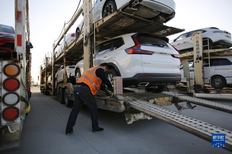 3月13日,工作人員在江蘇太倉港海通汽車碼頭堆場作業(yè)。