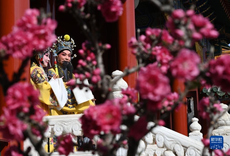 3月13日,“梅花獎”得主、表演藝術家黎安(左二)和國家一級演員余彬表演《長生殿·小宴》選段。