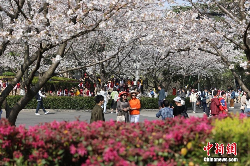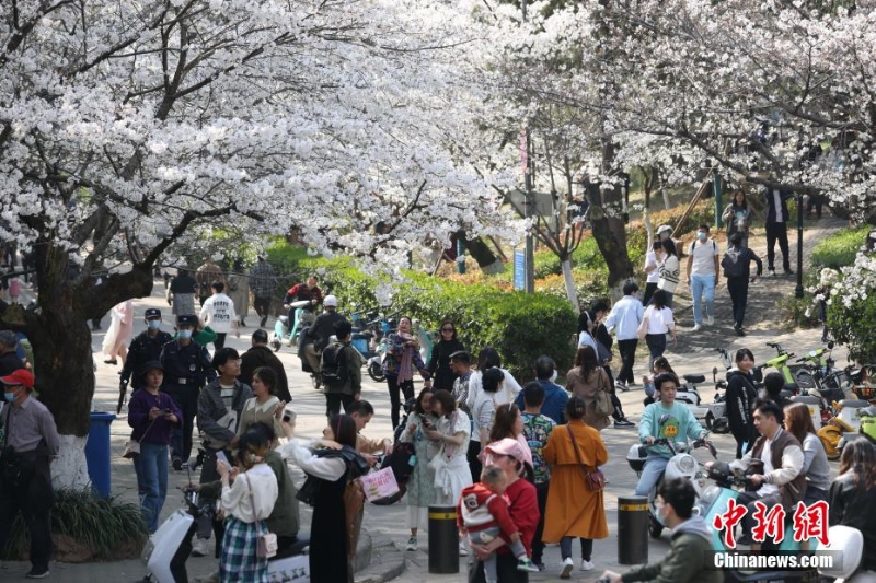 3月15日,武漢大學(xué)賞櫻預(yù)約首日,櫻花大道、鯤鵬廣場(chǎng)附近人潮涌動(dòng)。今年櫻花開放期間,武漢大學(xué)延續(xù)“實(shí)名限額、網(wǎng)絡(luò)預(yù)約、雙重核驗(yàn)”做法,面向社會(huì)公眾實(shí)行免費(fèi)預(yù)約賞櫻制,工作日每天預(yù)約限額1.5萬人,周末每天預(yù)約限額3萬人。此外,還將于3月18日舉辦醫(yī)護(hù)賞櫻專場(chǎng),邀請(qǐng)?jiān)踽t(yī)療隊(duì)及湖北省內(nèi)抗疫醫(yī)護(hù)人員來校賞櫻,并在弘毅門(原西門)舉行歡迎儀式。