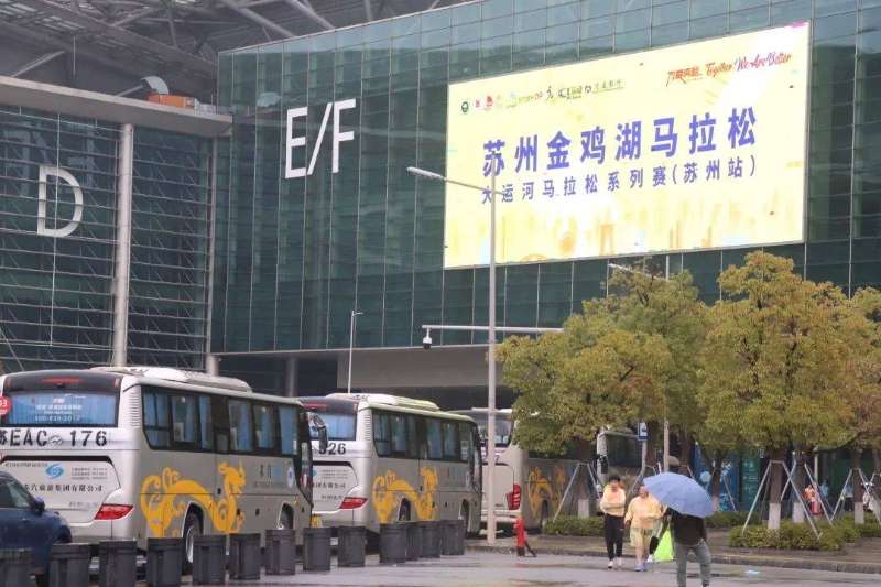 此次賽事的參賽人數(shù)超過30000人,為推進賽事順利舉行,蘇汽旅游集團提前與主辦方對接,制定了詳細的保障方案,對線路、車輛進行全面安排部署,共組織安排車輛45輛,其中蘇州金龍海格客車超25輛,分別負責志愿者接送、裁判接送、媒體接送與選手存取包。