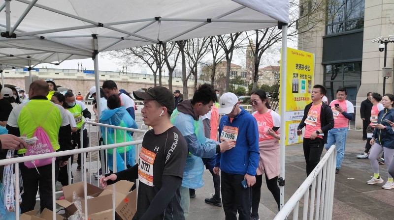 3月12日早6點30分左右,蘇州金龍志愿者團隊的志愿者們準時抵達位于蘇州工業(yè)園區(qū)李公堤的集合點,恰逢陰雨綿綿,刮風、降溫、路面濕滑等不利因素都給參加馬拉松比賽的參賽者們帶來了挑戰(zhàn),志愿者們抓緊時間,穿上志愿者服、披上簡易雨衣后即開始了緊張的賽前準備工作。早上8點30分,隨著發(fā)令槍一聲槍響,比賽正式開始。參賽選手們匯聚而成的長龍向前移動,蘇州金龍志愿者們嚴陣以待,為選手們提供服務。因比賽需要分別決出男女前三名,8名蘇州金龍志愿者提前趕至分流點協(xié)助對選手進行分流引導,他們在雨中手舉KT板、搭配手勢耐心引導男女選手們兩側(cè)分流。剩余48名志愿者冒雨守候在短程比賽終點,為每一位到達終點的選手蓋章、發(fā)放完賽獎牌和物資。最終,選手們克服身體和心理的雙重壓力抵達終點,雨水掩蓋了臉上長距離奔跑帶來的疲憊,卻掩蓋不了眼神中的堅毅和喜悅。陪伴他們的蘇州金龍志愿者也不忘向每一位選手說一聲:“辛苦了!”