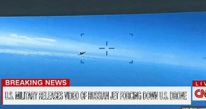 中新網(wǎng)3月16日電 綜合報道,當(dāng)?shù)貢r間14日,美俄軍機(jī)在黑海上空相遇,美國無人機(jī)隨后墜落海中。16日,美國歐洲司令部公布了一段據(jù)稱是當(dāng)時美俄軍機(jī)相遇的視頻。美國一名高級官員認(rèn)為,這段視頻“絕對證實”發(fā)生了物理碰撞和燃料傾倒。