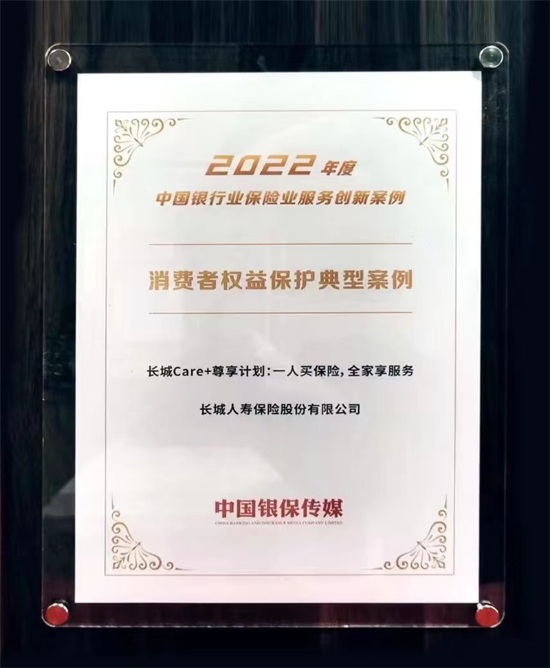 3月14日,由中國(guó)銀保傳媒主辦的2023年中國(guó)銀行業(yè)保險(xiǎn)業(yè)服務(wù)創(chuàng)新峰會(huì)在北京隆重召開(kāi),長(zhǎng)城人壽保險(xiǎn)股份有限公司憑借“Care+尊享計(jì)劃”——一人買(mǎi)保險(xiǎn),全家享服務(wù),獲評(píng)2022年度中國(guó)銀行業(yè)保險(xiǎn)業(yè)服務(wù)創(chuàng)新優(yōu)秀案例·消費(fèi)者權(quán)益保護(hù)典型案例。