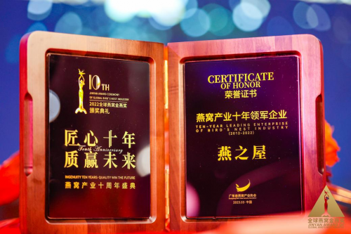 圖:燕之屋榮獲燕窩產業(yè)十年領軍企業(yè)