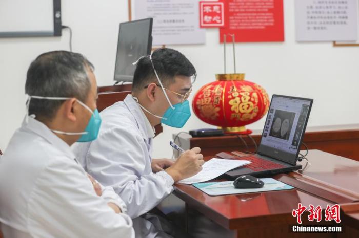 資料圖:圖為兩位急診科醫(yī)生在ICU會議室內(nèi)參與遠(yuǎn)程會診。(圖文無關(guān)) 劉力鑫 攝