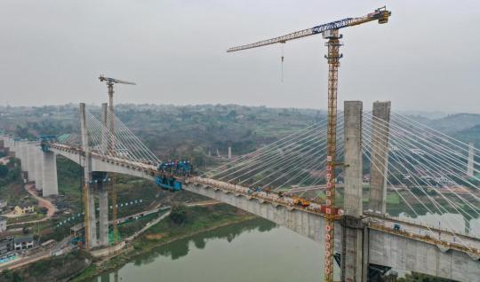 渝昆高鐵瀘州沱江特大橋主橋共計119個梁段,斜拉索20對,整個主梁重量達4.7萬噸。中鐵四局渝昆高鐵項目部負責人閆明賽介紹,為解決施工困難,突破了傳統(tǒng)“先樁基、后承臺”的施工方法,采取了系列創(chuàng)新工法,優(yōu)化混凝土配比,采用噴淋、覆蓋、暖風等養(yǎng)護措施保證梁體質(zhì)量和線形控制。