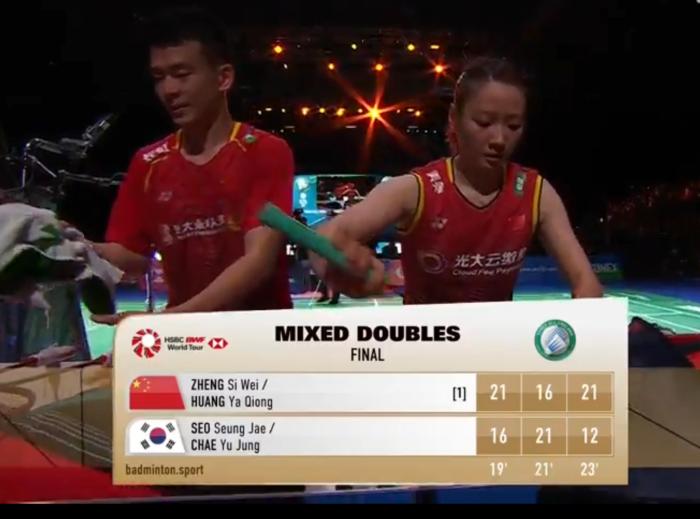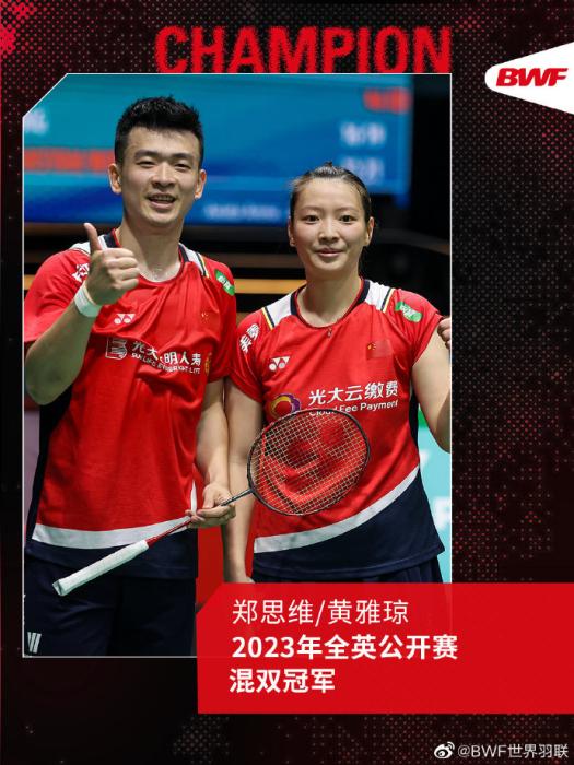 混雙決賽被安排在第二場(chǎng)進(jìn)行,“雅思”代表國(guó)羽率先登場(chǎng)。比賽中,作為頭號(hào)種子的鄭思維/黃雅瓊以21:16、16:21、21:12,大比分2:1擊敗韓國(guó)組合徐承宰/蔡侑汀,繼2019年后第二次奪得全英公開賽冠軍。這也是兩人繼馬來(lái)西亞1000賽后的賽季第二冠。