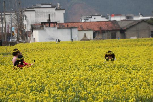 山腳下、梯田上,油菜花次第開放,成為婺源春天最靚的一抹黃,吸引大批游客前來打卡。